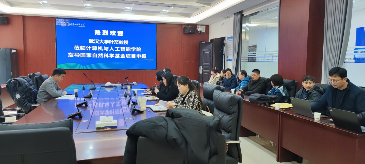 为做好2026年度国家自然科学基金项目申报工作,进一步提升学院申报书质量,1月16日下午,计算机与人工智能学院特邀武汉大学计算机学院叶茫教授来校作国家自然科学基金申报专题指导。计算机与人工智能学院院长杨莉、副院长李剑、科研处副处长余良俊及拟申报2026年国家自然科学基金的教师参加了会议,会议由院长杨莉主持。