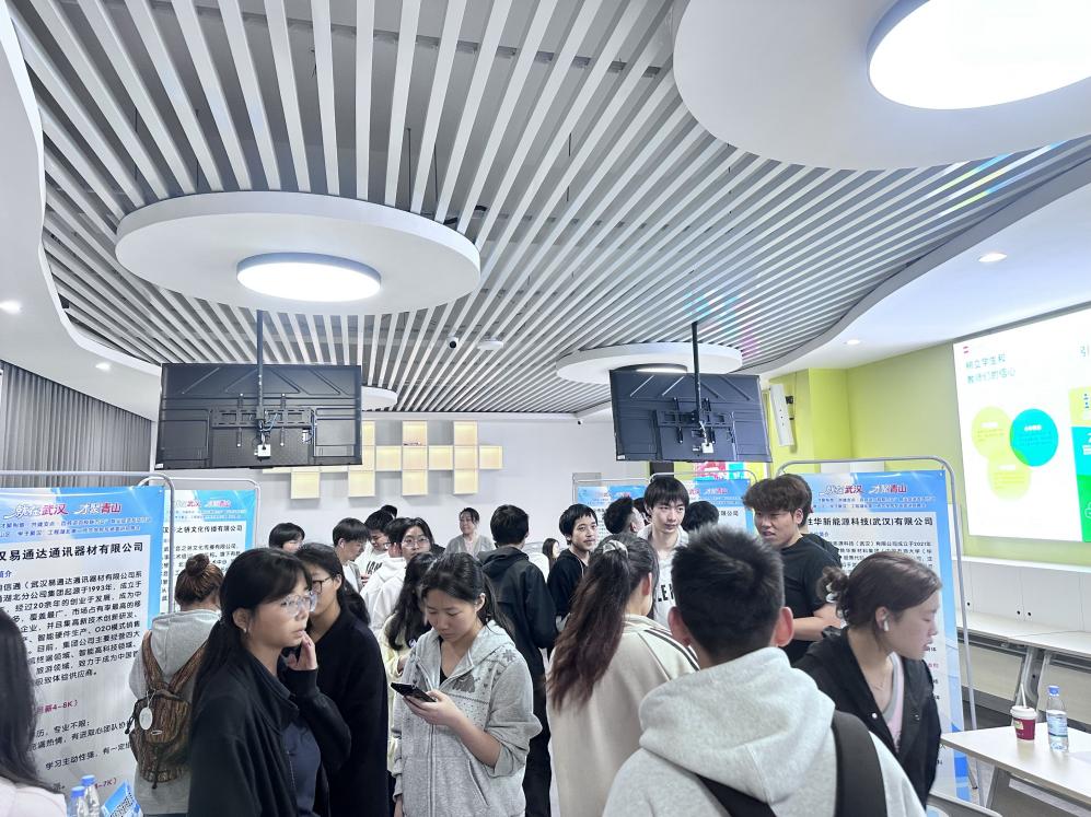 本网讯(通讯员 焦彦超)近日,2026年“才聚荆楚·共建支点·百县进百校联万企”就业促进专项行动暨青山区“学子聚汉”工程专场招聘会在我校4号实验楼举行。活动由计算机与人工智能学院主办,“一站式”学生社区联合学院就业服务团队承办,青山区人才服务中心副主任万军携10家企业代表到校招聘洽谈,学院党委副书记王敏出席校企座谈会。