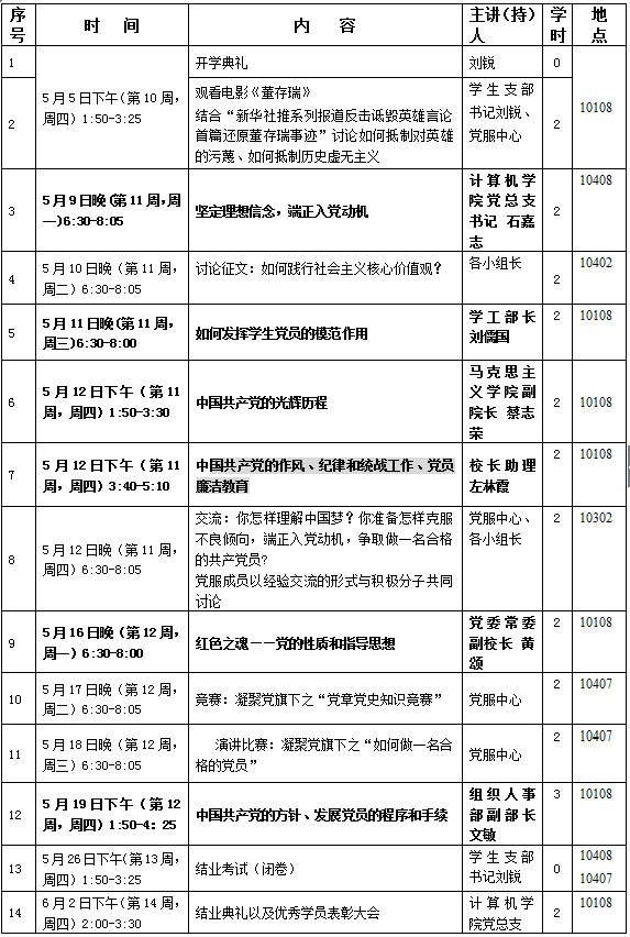湖北第二师范学院党校第185期、计算机学院分党校第13期入党积极分子培训班学习计划