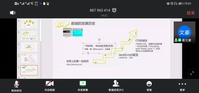 本网讯(记者王安)4月2日晚上七点半,计算机学院第七季第五期学长学姐论坛通过腾讯会议顺利开讲。17级计科大数据2班姜文豪与同学们分享“Web前端课程小知识”,内容包含Web前端是什么、能做什么、怎么学以及前景与发展。