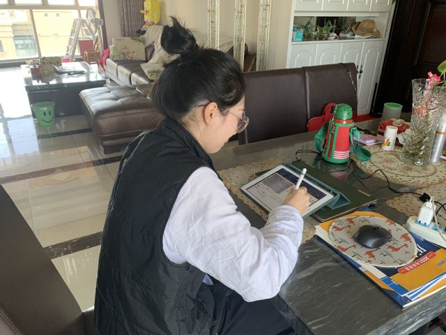 与李灿同一批的志愿者里,还有一名学生党员——17级教育技术学马芸昀。与李灿每日辅导不同,马芸昀每周日会集中给初一的小陈辅导语文、数学和英语,复习一周的课程,同时辅导完成作业,一次辅导时间多在3小时左右。马芸昀用平板电脑上课,一个专门的笔记APP当黑板,一支电子笔当粉笔,在视频里为小陈讲解知识点和难题。辅导至今,整理了40多页电子笔记,写坏了一个电子笔头。