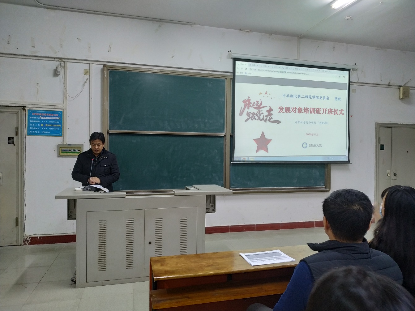 本网讯(通讯员 熊军平 刘志强)11月24日,计算机学院党委分党校第18期发展对象培训班在10302教室举行开班仪式,学院党委副书记熊坤鹏、学生第一党支部书记邓家桃及全体发展对象参加,班主任熊军平主持。