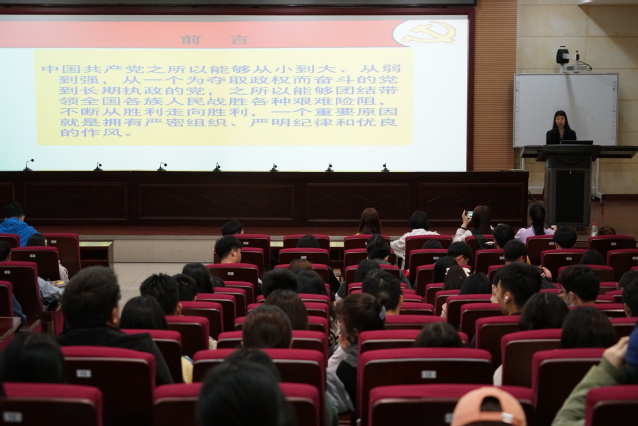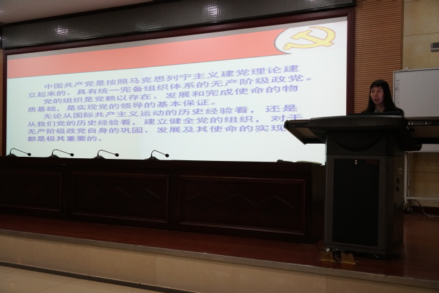 会议伊始,邓家桃对党组织进行了介绍,并以我校为例进行具体说明。会中提到“党的基层组织是党在社会基层组织中的战斗堡垒,是党的全部工作和战斗力的基础。”表明了基层党组织的地位和作用。紧接着,邓家桃向同学们讲述了民主集中制的提出与发展及内涵和原则。