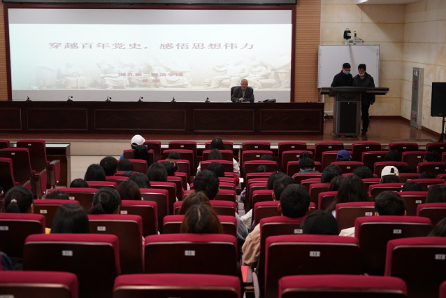 黄颂校长从着眼“两个大局”·开启新的征程、穿越百年党史·把握主题主线以及把握三个逻辑·感悟思想伟力三个方面展开论述,通过引用大量历史资料展现出一幅幅鲜活的画面,带领大家回顾中国共产党百年历史成就,深刻体会党的思想的巨大影响力。