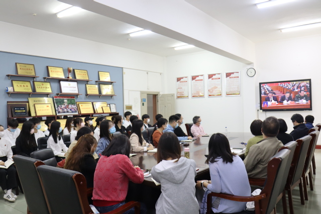 在计算机学院会议室,学院党政领导班子成员、教师、学生代表共同观看开幕式;学生党支部全体成员在S4112会场观看,学院各团支部组织在教学楼多个教室集中观看学习。全体师生用多种方式在不同场所全程认真收看学习,并积极撰写和交流学习心得。