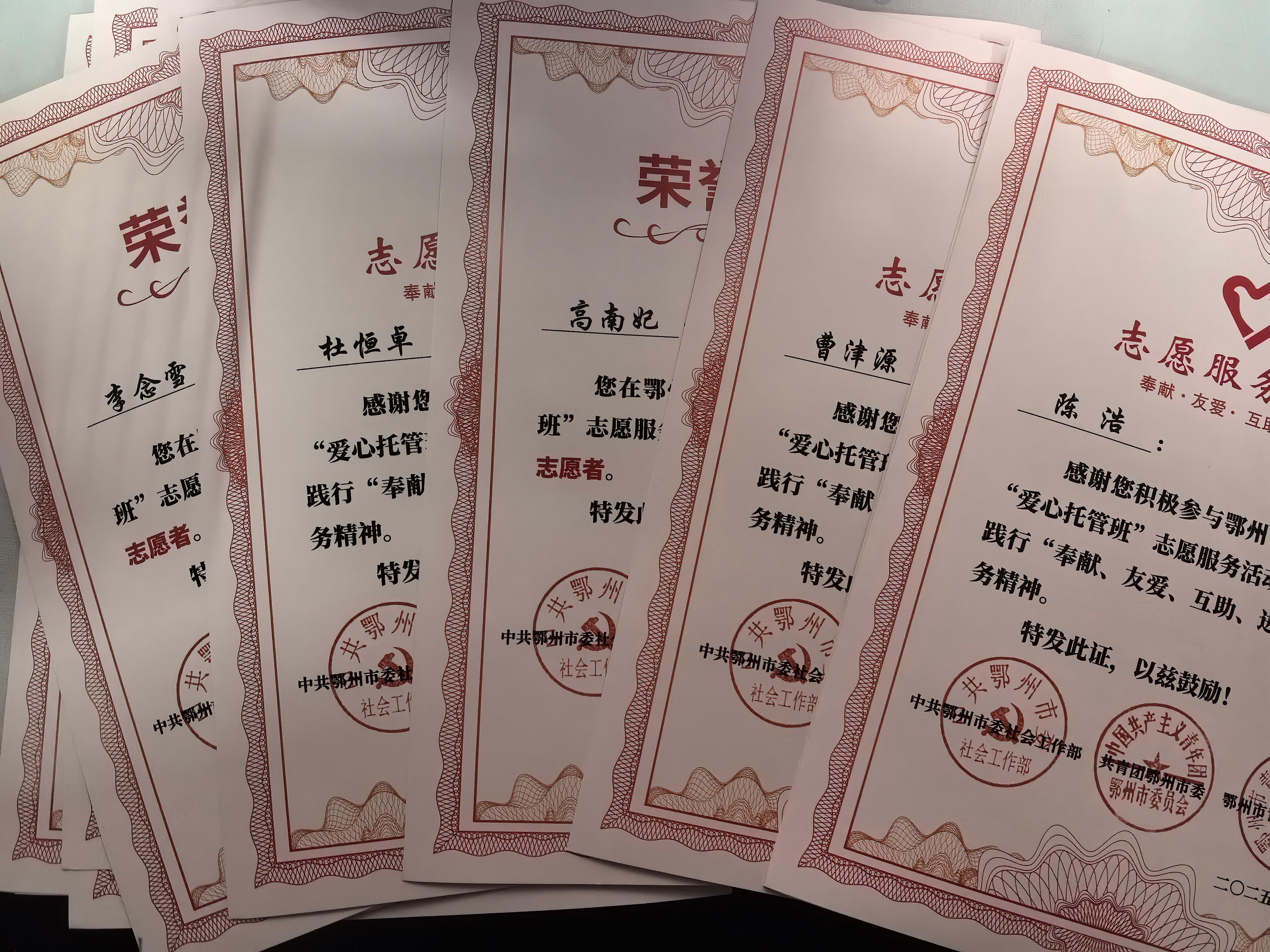 鄂州团委也为志愿者们颁发志愿服务证书,并授予该团队“优秀志愿服务团队”称号。此外,“朝夕守望”志愿服务团队与蒲团乡团委就后续共建志愿服务项目展开深入交流。此次活动标志着暑期“三下乡”支教活动的圆满收官,也开启了校地共建志愿服务的新篇章。