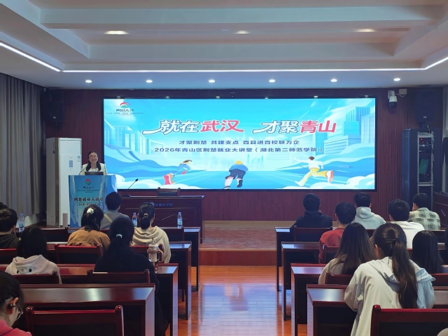 本网讯(通讯员 冯诚)4月9日,2026年“才聚荆楚·共建支点·百县进百校联万企”就业促进专项行动暨青山区“学子聚汉”工程专场招聘会在我校4号实验楼顺利举行。青山区人才服务中心副主任万军携武汉市万汉智能装备制造有限公司、跨海侠科技(武汉)有限公司等10家企业代表到校,开展就业招聘及校企合作洽谈。计算机与人工智能学院党委副书记王敏出席校企座谈会。